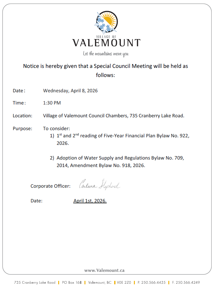 The Village of Valemount is currently hiring for a full-time, seasonal Groundskeeper. Competition closes Sunday, March 29, at 4 pm. **DEADLINE EXTENDED TO APRIL 12, AT 4 pm.**...
